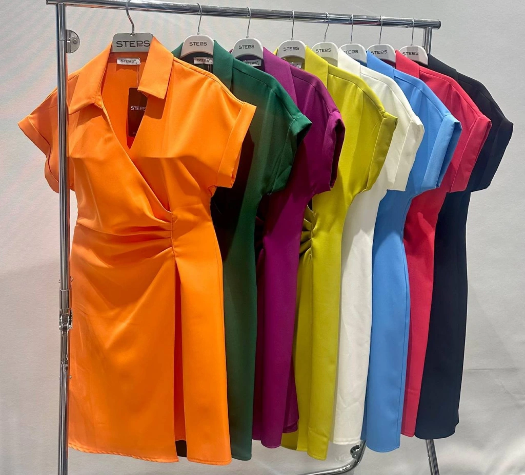 GÖMLEK YAKA DOUBLE KREP KUMAŞ ELBİSE YAĞ YEŞİLİ